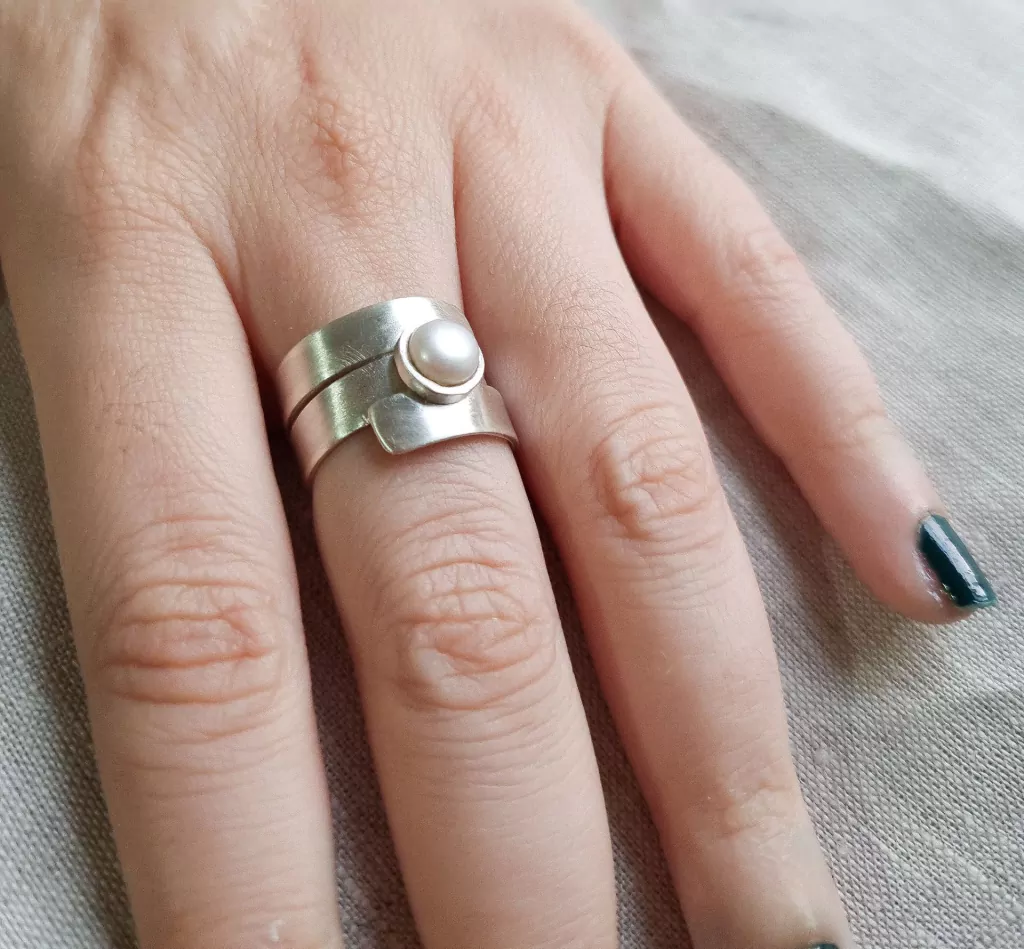 O Anel Sirena é um clássico da Trê revisitado. Nessa versão balneária, o anel ganha a beleza da pérola natural.