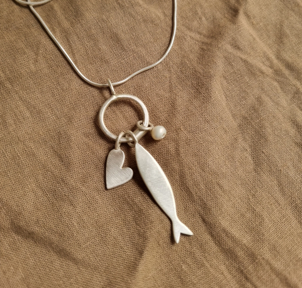 Essa joia foi criada inspirada na carta dos peixes do baralho cigano, que fala sobre fartura, coletividade, prosperidade, abundância e encantamento. Uma joia perfeita para carregar consigo todos os dias.